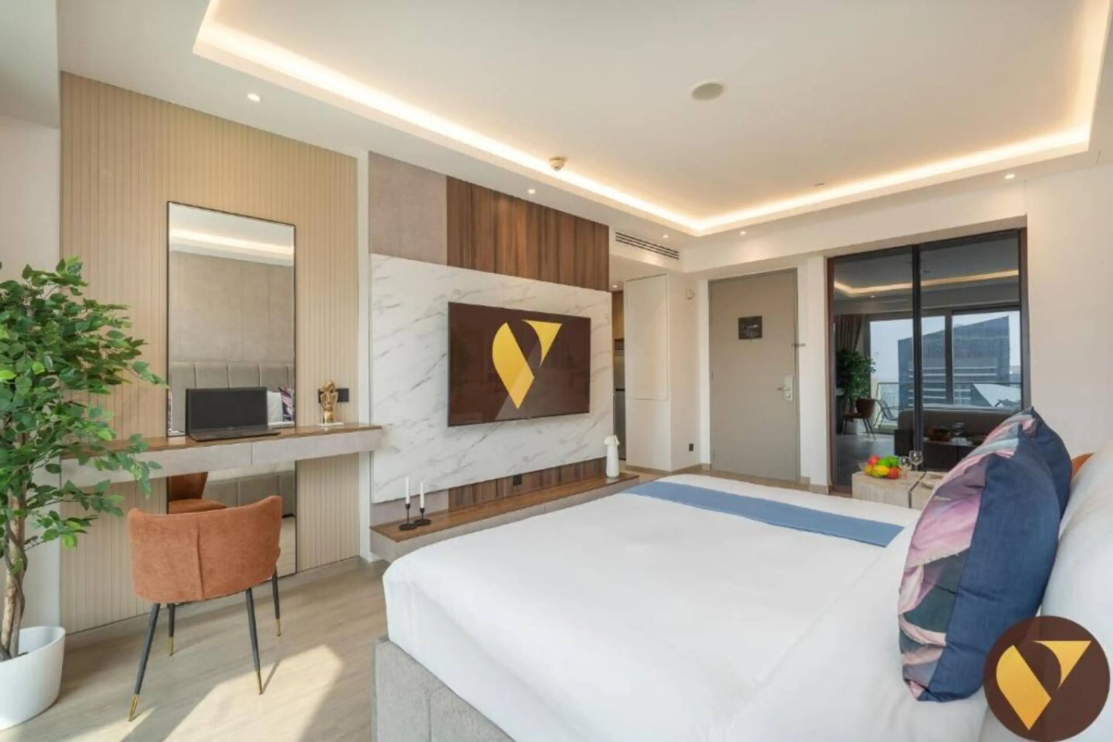 Negative: The room is good view and there is balcony size of the room is very good for couples the bathroom is clean but there is bad smell in the kitchen always and when I get the room I find hair on the bed and the bedsheets was very dirty like used and we talked to change the bed they bring new one and say to put by my self he don’t want to serve us and conditions there is high sound it was annoying so bad we talked with the manager but no answer and the check out very early at 11 and we are sleeping they open the door very rude and no room service no phone in the room it was bad experience in this room